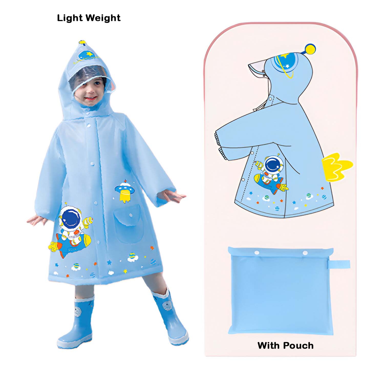 Very comfortable and convenient raincoats made from feather-light EVA material. It keeps your little ones dry and cozy during rainy days, ensuring endless fun without worrying about getting wet. They come along with charming and playful designs. With adjustable features and a compact size, these raincoats can be easily packed into a backpack or carried around without any hassle.