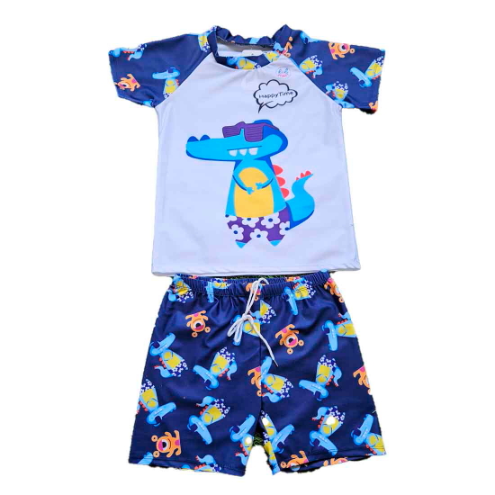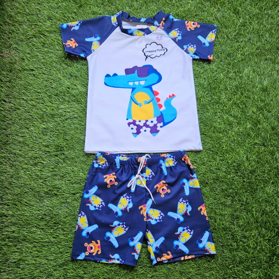Swimming Costume for Boys, Blue Dino Swimsuit, Two-Piece Swimwear, 3 to 10 Years