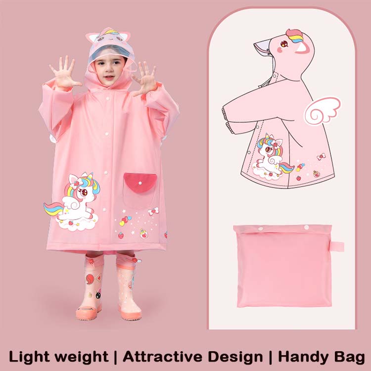 Very comfortable and convenient raincoats made from feather-light EVA material. It keeps your little ones dry and cozy during rainy days, ensuring endless fun without worrying about getting wet. They come along with charming and playful designs. With adjustable features and a compact size, these raincoats can be easily packed into a backpack or carried around without any hassle.